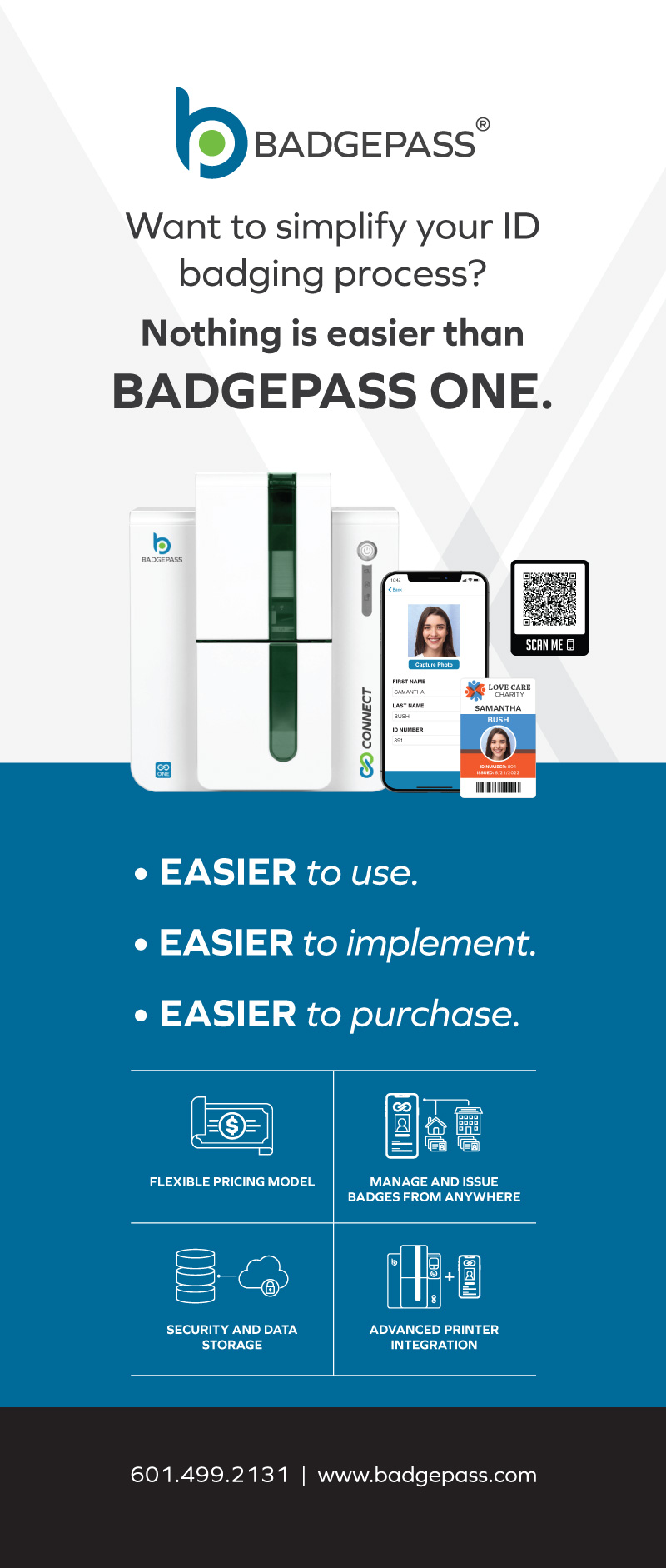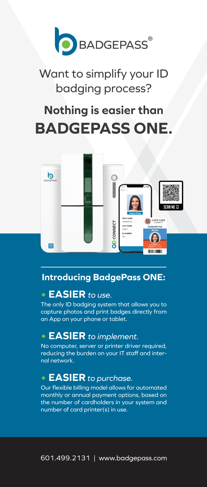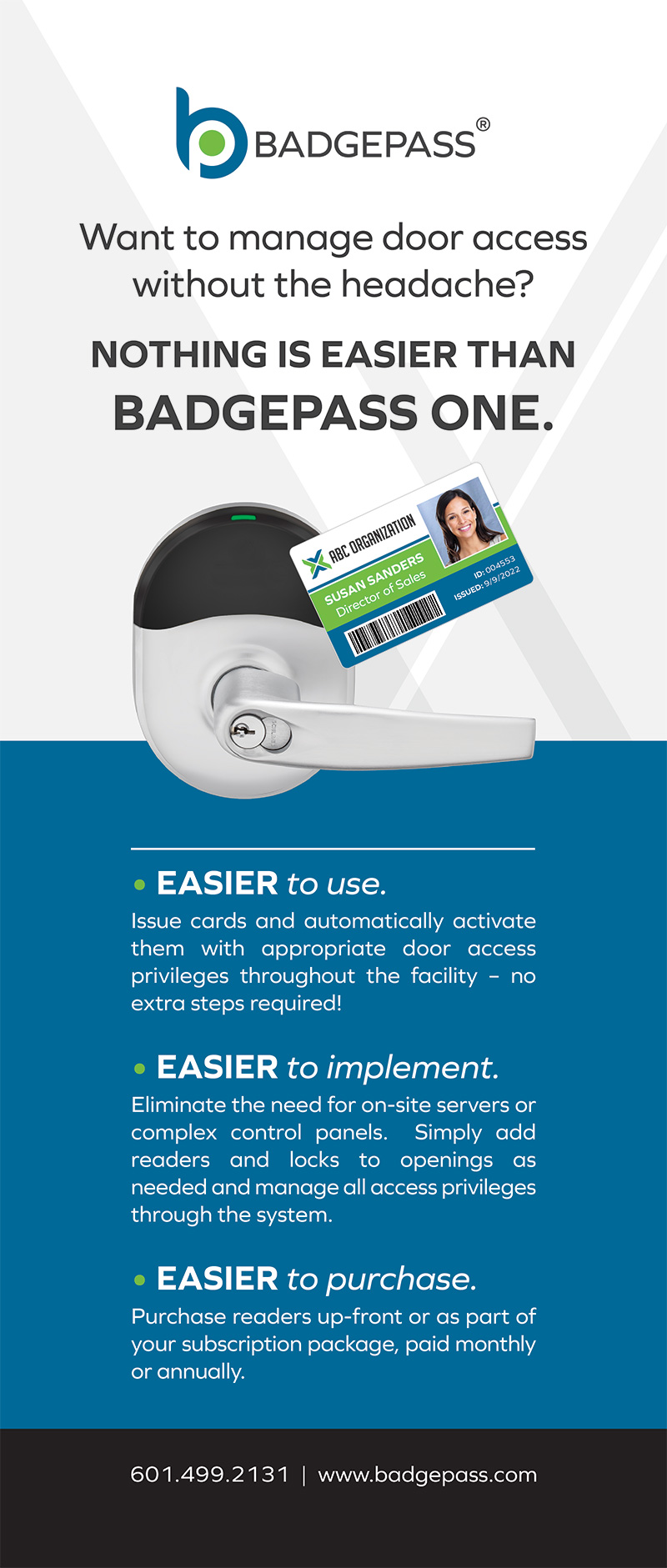 Objective: Create 2 retractable banner designs highlighting the simplicity of the ID badging and door access process with BadgePass ONE. The banners were to be used at tradeshow events.