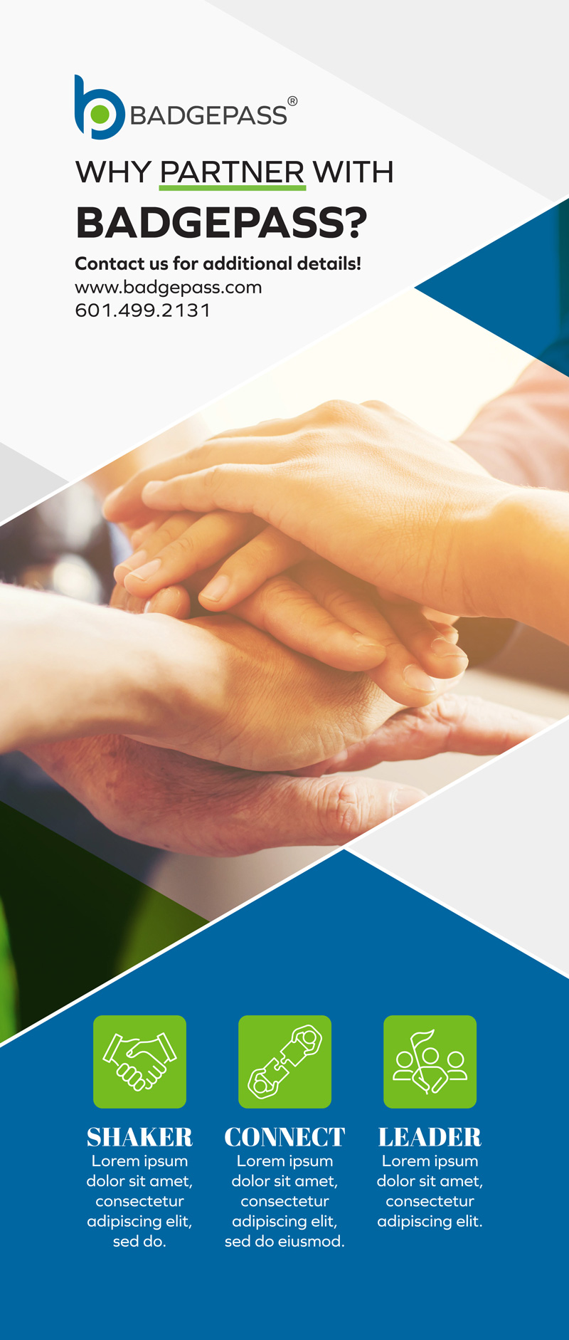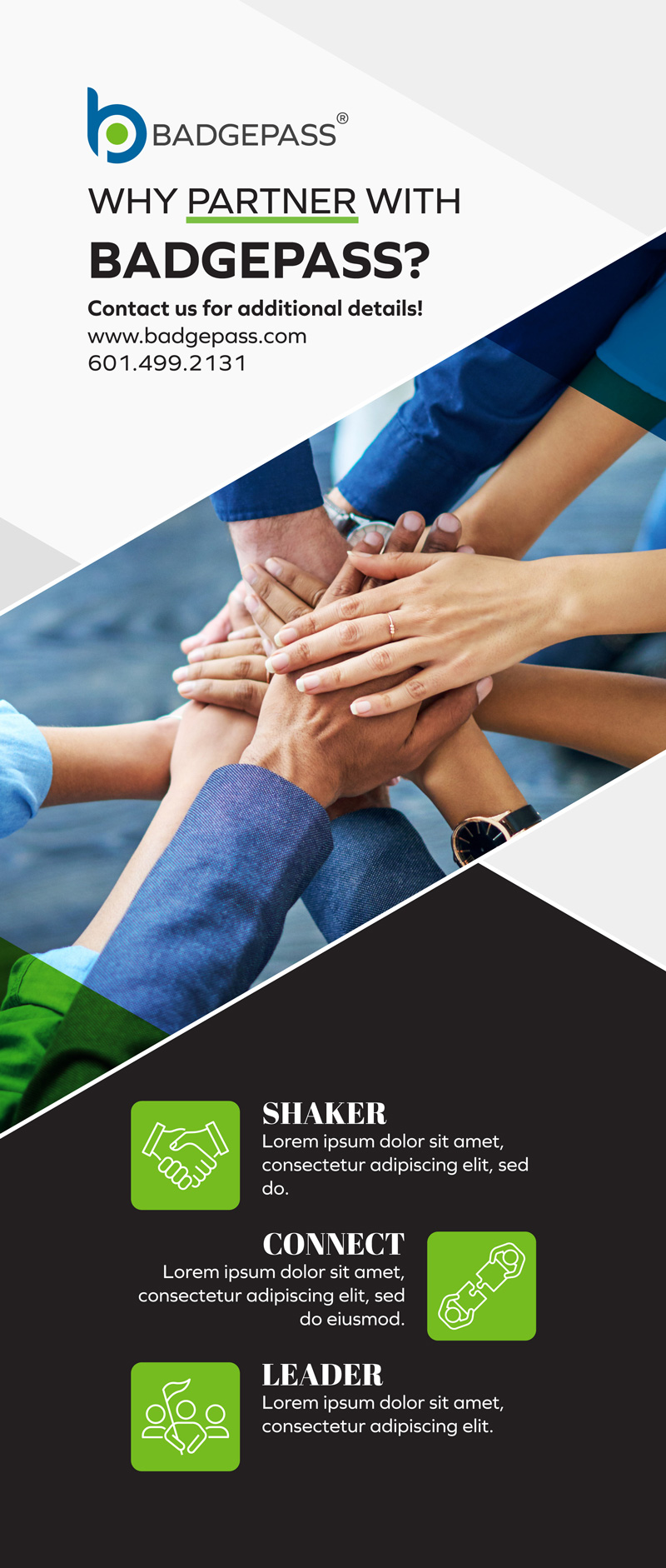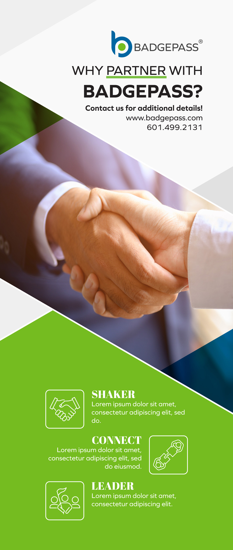 Objective: Create a large retractable banner design highlighting why companies would want to partner with BadgePass.