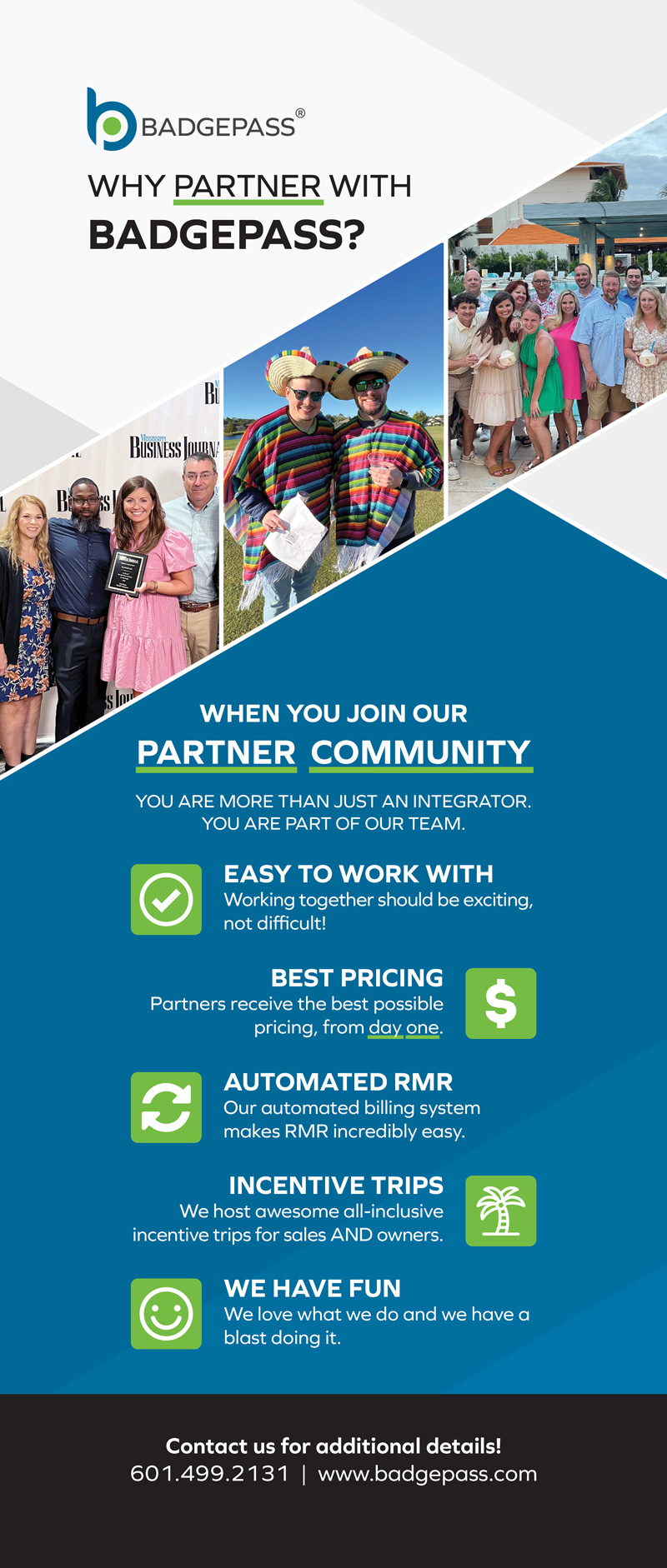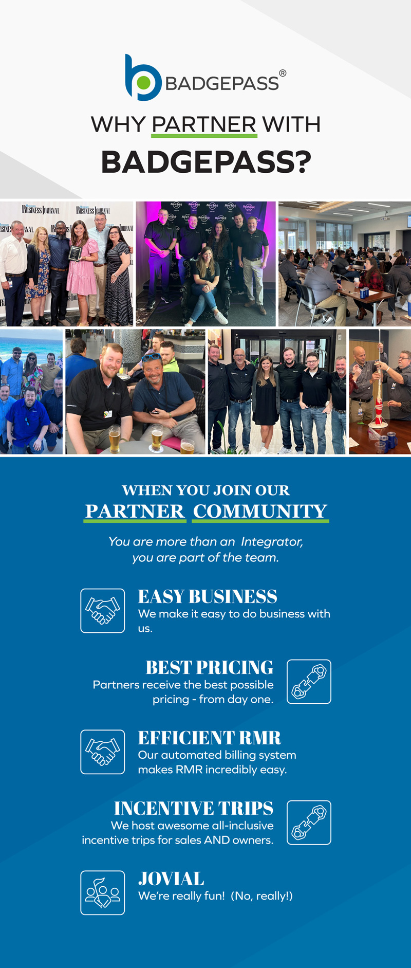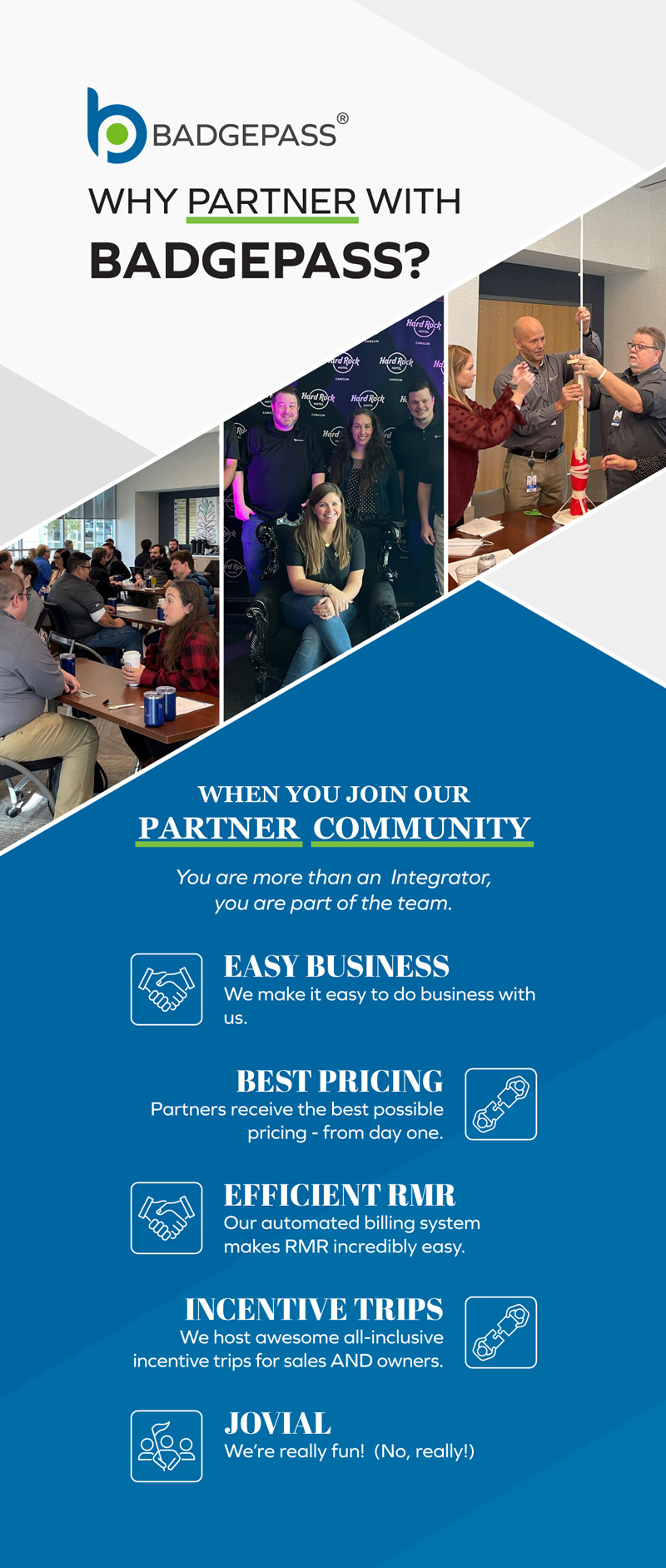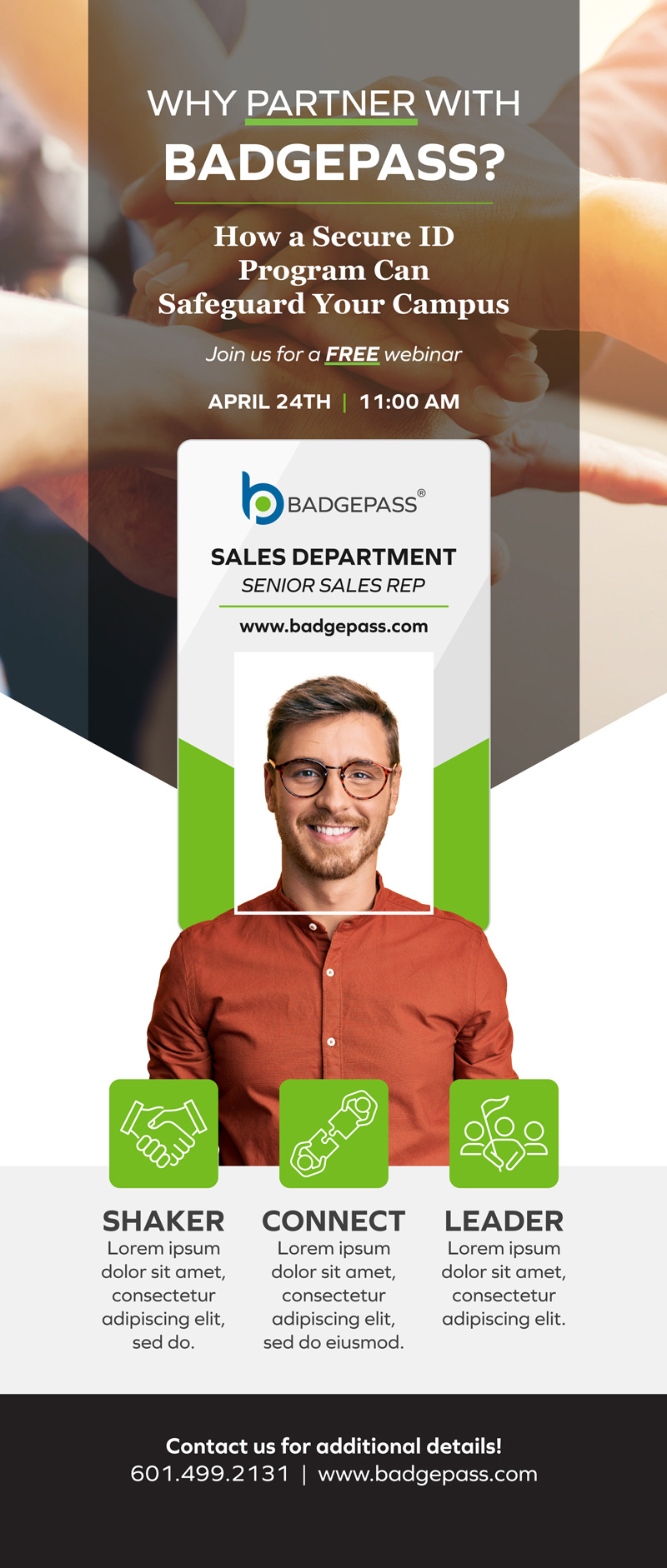 Objective: Create a large retractable banner design highlighting why companies would want to partner with BadgePass.
