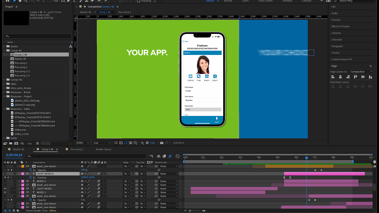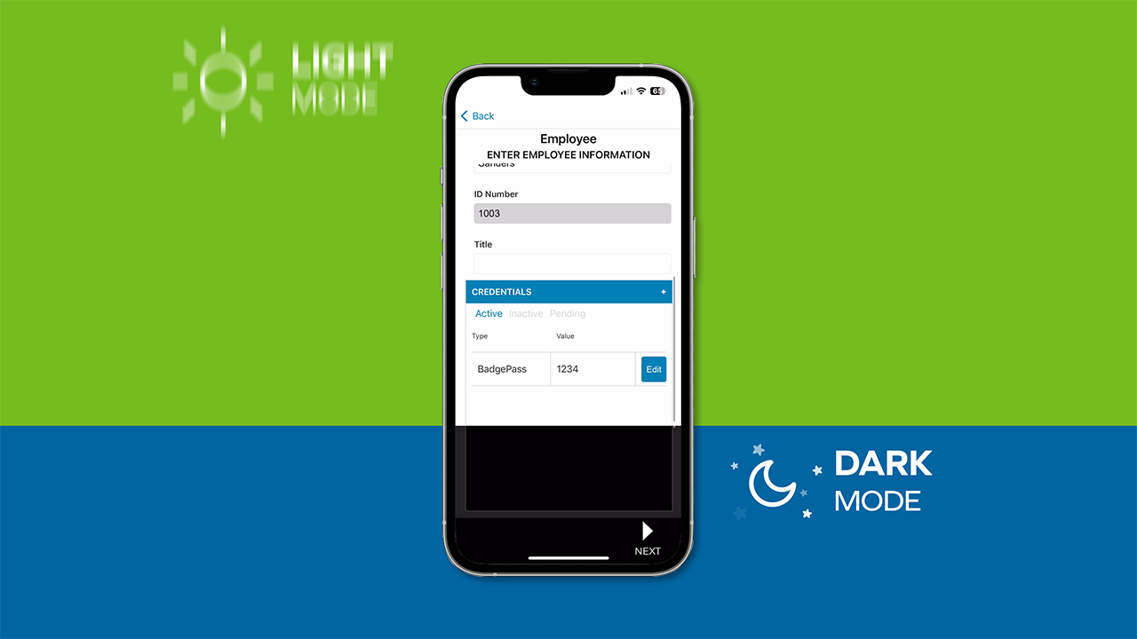 Objective: Create a quick motion graphic video that highlights the BadgePass ONE feature of being able to switch from light to dark mode.