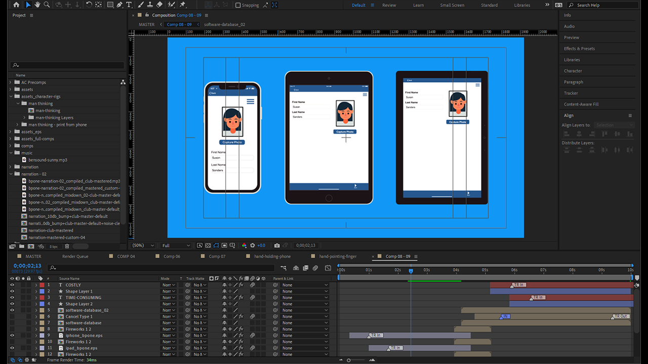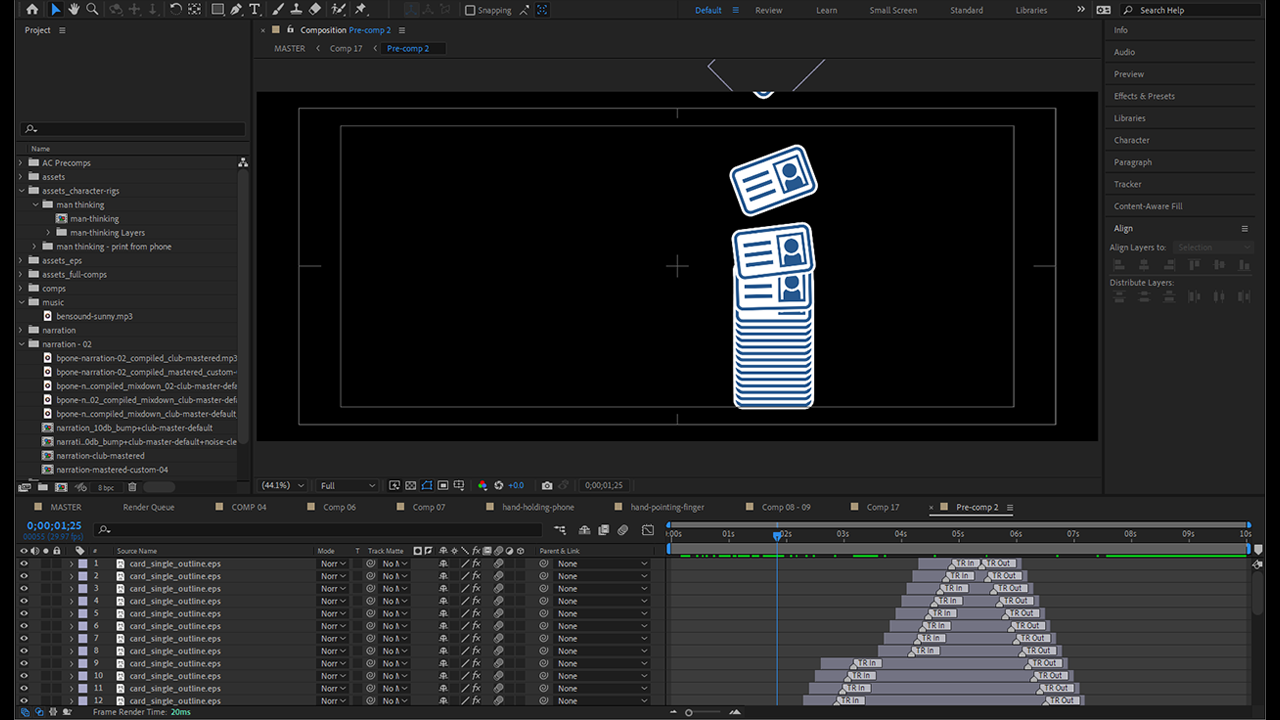 Approach: This project was one of my very first forays into motion design. I started the project with storyboards from the project owner. I then took the storyboard sketches and planned out how I was going to build the vector assets. From there I started my project file in Adobe After Effects, created my parent composition and broke down each storyboard thumbnail into separate compositions.