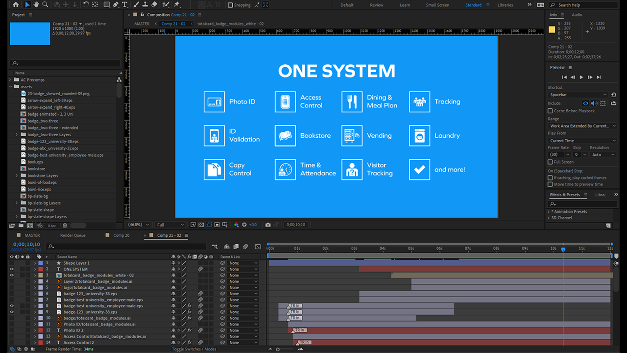 Objective: Create a motion graphic video that serves as a general overview for BadgePass’ Campus One Card product – TotalCard.