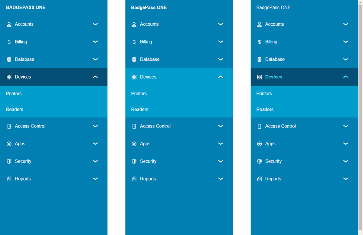 Stakeholders wanted a visual mockup of a sidebar in the BadgePass ONE application to show hover effects and collapsible elements, but I decided an actual interactive draft would work even better. 3 different sidebars with different hover effects.